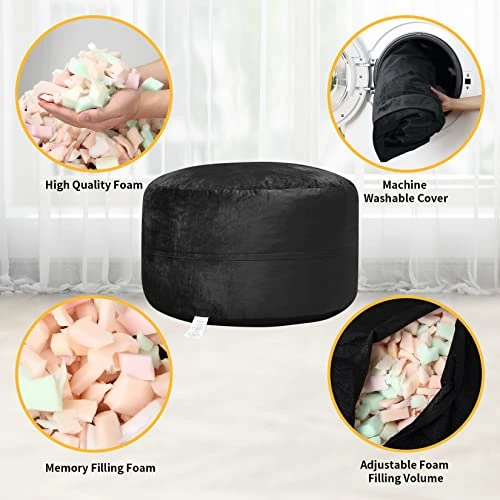 - 【Shredded Memory Foam】 This bean bag chair is stuffed with a shredded, soft, memory foam blend that is highly durable to maintain shape.
