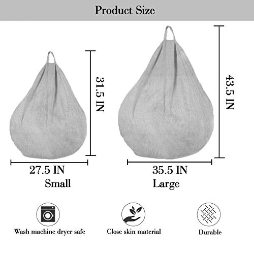 - Soft,Washable Cover: Beanbag chair cover is removable. Washer and dryer safe for your convenience. Extra long zipper for easy removal. Extra large zipper openings with heavy duty zippers to allow easy access for stuffing toys, stuffed Animal, blankets and pillows.