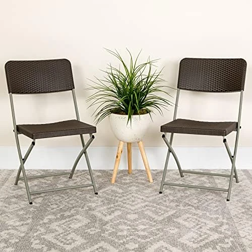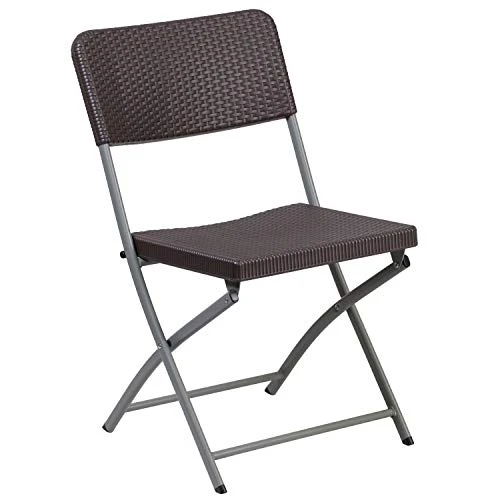 - Brown rattan plastic back and seat, 440 lb. weight capacity, textured seat ensures safe seating