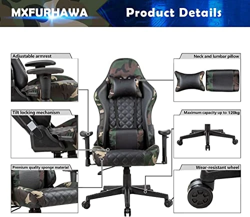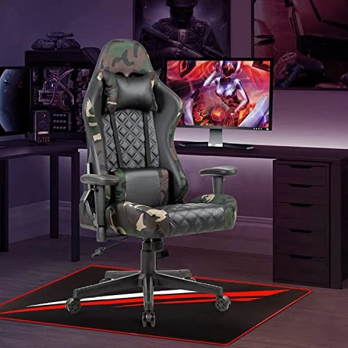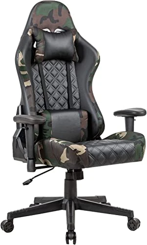 - [High-quality materials]: high-density sponge cushions up to 13cm thick, good resilience, and will not collapse after sitting for a long time. The combination of black PU and camouflage breathable cloth provides a more comfortable touch than ordinary leather, SGS Class IV gas lift and high quality nylon base with smooth rolling casters make the structure superbly stable and ensure service life and safety. (Recommended weight: no more than 120kg)