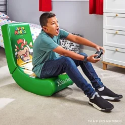 X Rocker Official Super 2.1 Audio Pedestal Mario Edition Gaming Chair, Faux Leather, Blue/White