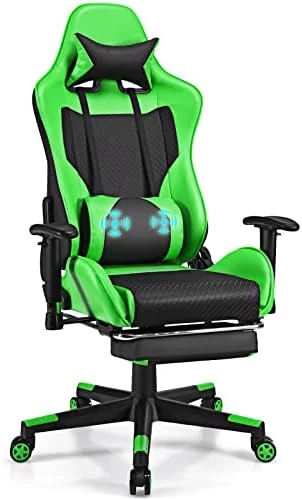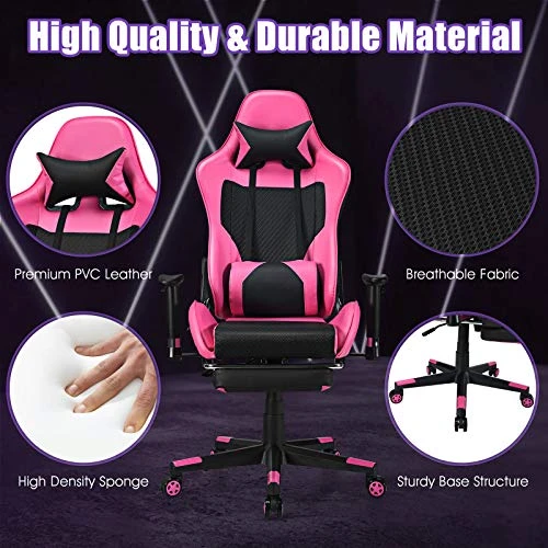 - Sitting and Lying Double Use: The back of this racing chair can be extended at 180 degrees, so you can adjust it to your desired comfortable angle. The chair also has one considerable foldable feet shelf, which gives your legs support when you sleep on the chair. And it can be conveniently retracted on working and playing modes.