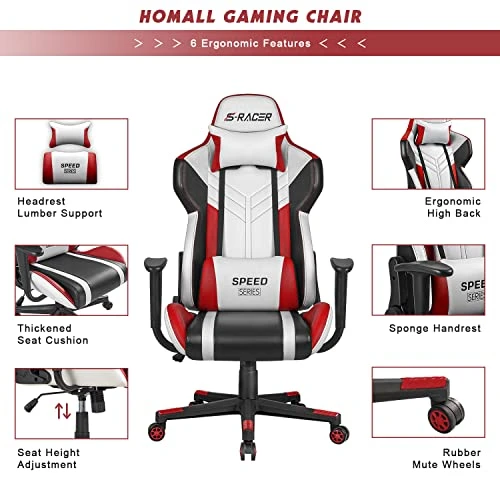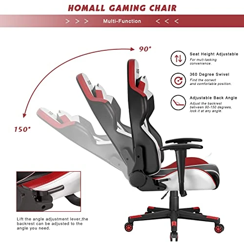 - Ergonomic Design: With it’s fashionable feature and ergonomic design,homall gaming chair will make an impression.With it’s soft armrest,lumbar support and thicker seat padded cushions make it an ideal for gaming.