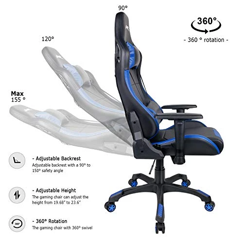 - Dimension : The size of the gaming chair is about 20.86″L x 18.9″D x 19.68″-23.6″