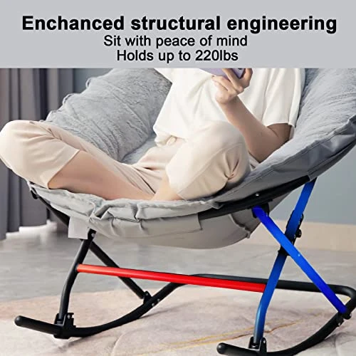 - Measuring 29.1″ H x 22.5″ W x 31.5″ L, this foldable rocking saucer chair is ideal for kids, teens, and young adults. The foldable steel frame supports up to 225 lbs and folds flat when not in use, making it easy to store in tight spaces. Plus, it requires no assembly, making it an easy item to transport around and carry.
