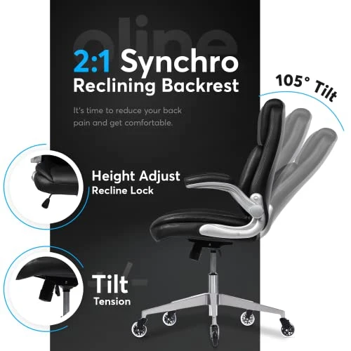 - NEXT LEVEL COMFORT: This Oline office chair contains a 105° tilt, so not only can you get the most out of sitting comfortably upwards, but you can also slightly recline your back. What lends support to this essential element is the tilt tension so you can control the tilt sensitivity. In addition, you have the 2:1 synchro reclining backrest which feels just heavenly and mandatory.