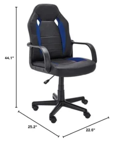Amazon Basics Racing/Gaming Style Office Chair – Faux Leather, Blue, 25.2″D X 22.6″W X 44.1″H