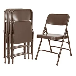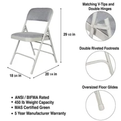 OEF Furnishings Premium Vinyl Upholstered Triple Brace Double Hinge Folding Chair, Beige