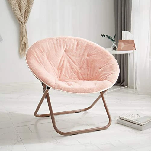 - FOLDABLE: A foldable frame supports up to 225 lbs and folds flat when not in use, making it easy to hide this faux fur saucer chair out of sight without taking up a significant amount of room in tight spaces. This saucer chair also has a safety locking mechanism on the leg for added support. This saucer chair is easy to transport around making it an item that is easy to carry. Carry this saucer chair with you to your next destination, as it is also travel friendly.